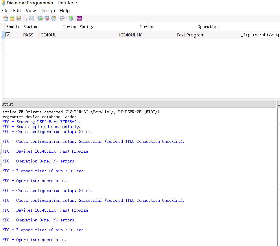 2)ICE40 SPI 模式编程烧录,只需要1s时间